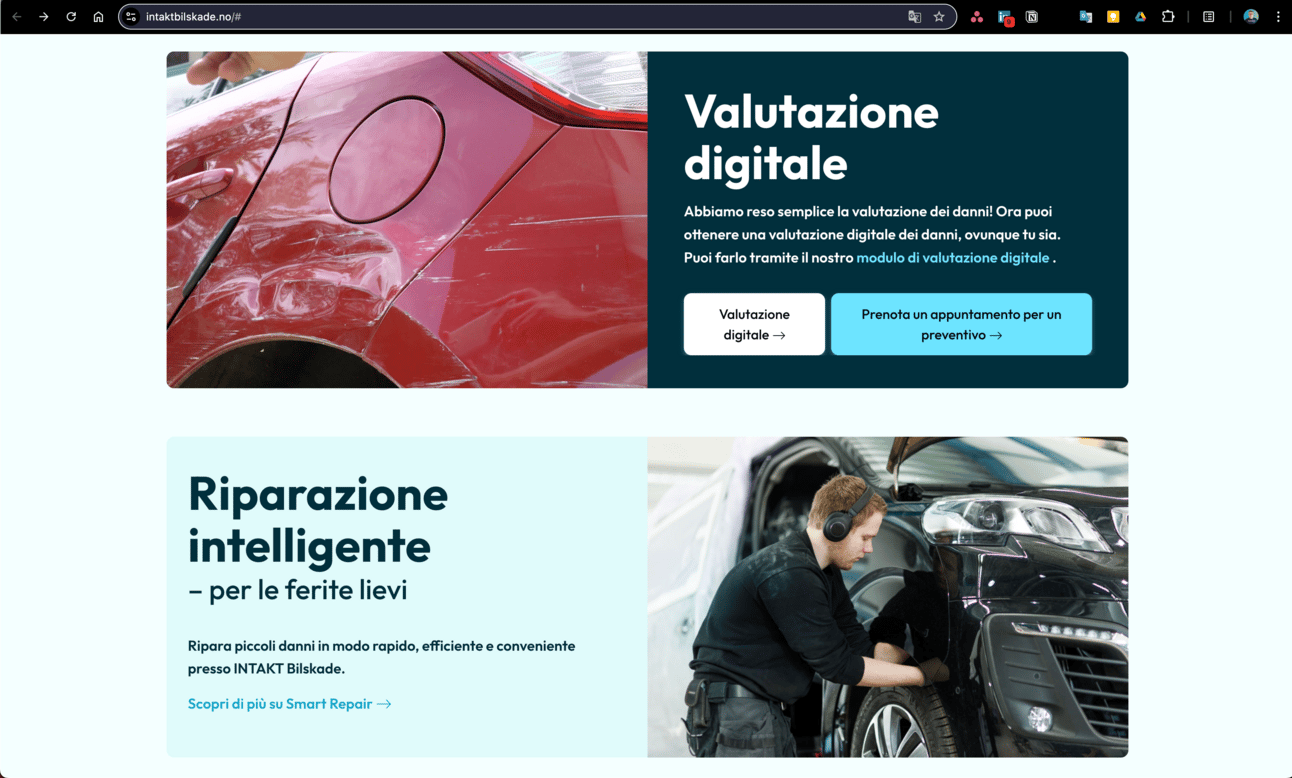 INTAKT Bilskade (molto complicato da pronunciare e capire, usate il traduttore ๐ ) รจ un network di carrozzerie indipendenti che opera in Norvegia con un modello simile ad altri network che abbiamo in Italia (un mix di soluzione in franchising e co-proprietร dei centri).